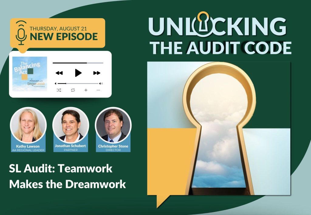 We breakdown the complexities and demystify the audit process, with practical discussions and guidance. Each episode ‘unlocks’ different aspects of financial statement audits, from preparation to execution and from common engagements to highly specialized environments like municipal and local government. Listen how the SingerLewak Assurance Team ‘unlocks the audit code’ to ensure an effective audit with minimal disruption to your ongoing operations.